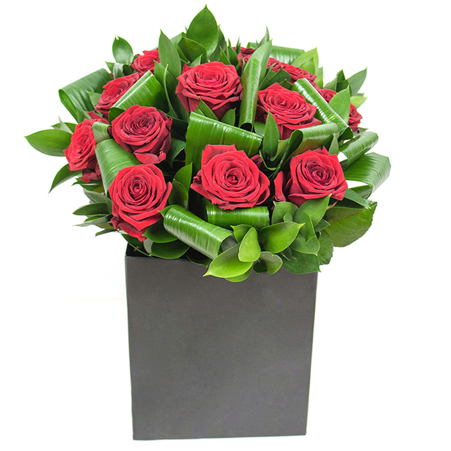 Elevate your surroundings with our stunning bouquet featuring lush red roses intertwined with the natural beauty of aspidistra leaves and ruscus. Each flower is hand-picked to ensure exceptional quality and long-lasting freshness, creating a display that is as luxurious as it is charming.
